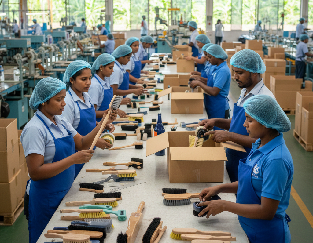 Explore our extensive manufacturing capabilities, located in a state-of-the-art facility. Here, we produce high-quality cleaning brushes designed for bulk distribution, ensuring both efficiency and durability. Our commitment to excellence and innovation drives our operations. Our Factory is located at a point where we could easily procure our imported and local raw material with easy access to the highways and Colombo Port. In view of the location of the factory it is easy to procure all locally available basic raw materials such as rubber timber and coconut fiber.