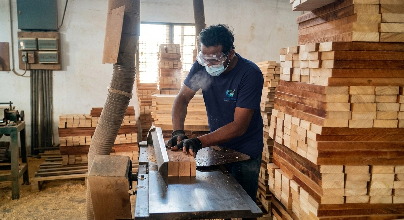 We have our own logging operation saw mill and wood working facility to produce timber blocks for exports and transformation into brushes.